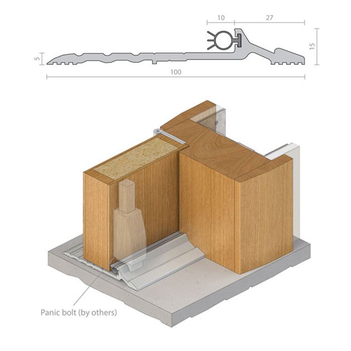 The RP117Si is a weather proof threshold plate seal suited to outward opening broad butt hinged doors. Its ideal for use with a panic type exit device (by others).